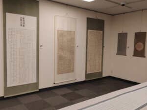 「千載を俯仰し、古典に学び真をもとめる」をモットーに漢字で結ばれる世界を目指して努力を重ねた作品が展示されている。